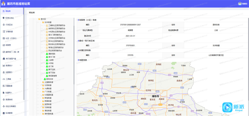 新派訊 為解決智慧城市建設(shè)中普遍面臨地址信息“多頭采集、標(biāo)準(zhǔn)不一、共享協(xié)同困難”的突出問題,濰坊市通過組建由市大數(shù)據(jù)局牽頭,公安、民政、自然資源和規(guī)劃等部門協(xié)同推進(jìn)的地址庫建設(shè)工作小組,制定統(tǒng)一的地址編碼規(guī)則與數(shù)據(jù)規(guī)范,搭建全市一體化的地址應(yīng)用服務(wù)平臺,并推動多源地址數(shù)據(jù)的歸集與治理,形成651萬標(biāo)準(zhǔn)地址數(shù)據(jù)。
