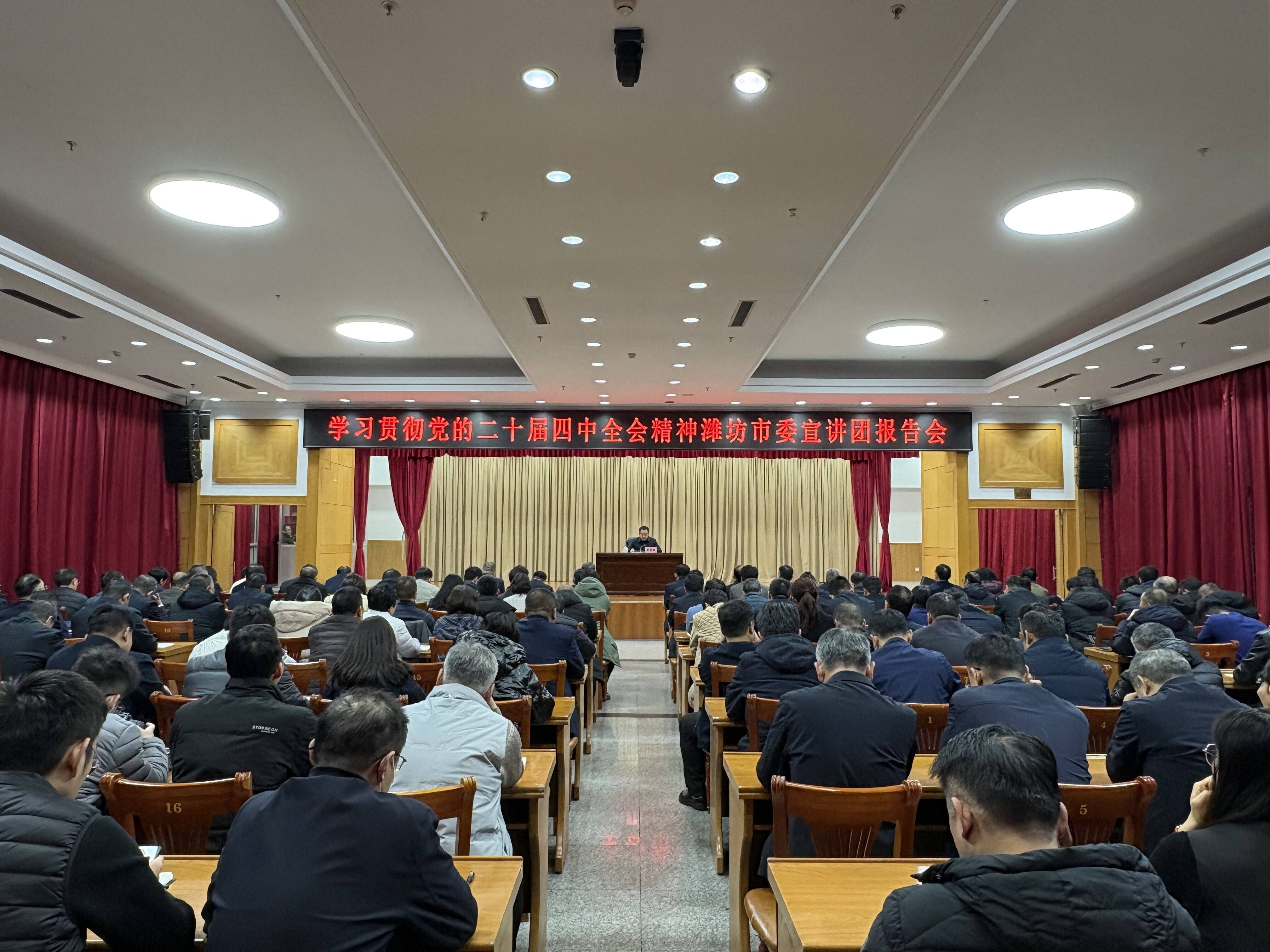 新派訊 為深入學(xué)習(xí)貫徹黨的二十屆四中全會精神,按照市委統(tǒng)一安排,12月12日,學(xué)習(xí)貫徹黨的二十屆四中全會精神濰坊市委宣講團(tuán)報(bào)告會在市直交通運(yùn)輸系統(tǒng)舉行。市委宣講團(tuán)成員,市交通局黨組書記、局長劉學(xué)建作宣講報(bào)告。市直交通運(yùn)輸系統(tǒng)和市公交集團(tuán)共計(jì)170名干部職工參加。